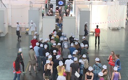 Hilfe! Panik! Jeder der sich ungern in großen Menschenmengen aufhält — sei es auf Konzerten oder im Fußballstadion — kennt die unangenehmen Gefühle, die einen solcherart eingezwängt überkommen können. Und tatsächlich: Eine der größten Gefahren solcher Großereignisse geht nicht von äußeren Unglücken wie zum Beispiel Brandkatastrophen aus, sondern vom Gedränge selbst. Um besser zu verstehen, wie man diese Unfälle verhindern kann, führen Wissenschaftler des Forschungszentrums Jülich in der Messe Düsseldorf drei Tage lang Experimente und typische Szenarien von Großveranstaltungen durch.