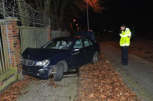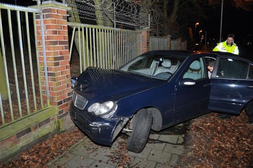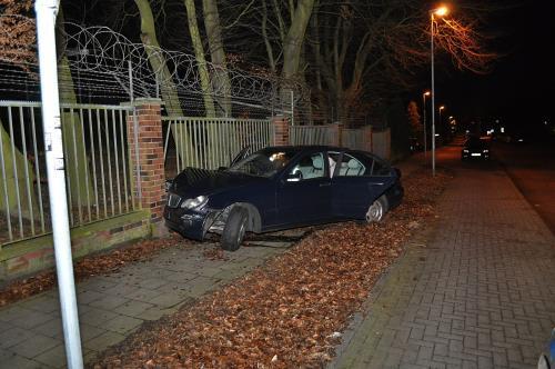 Ob die Jugendlichen nun aufgrund einer Verfolgung die Kontrolle verloren haben ist bislang unklar. Der Mercedes kam von der Straße ab und prallte in die Mauer der Bundespolizei Lübeck.