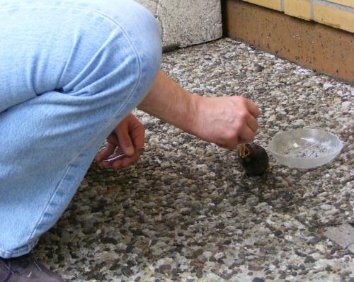 Drosselbaby von Vogelmama verlassen, es muss jetzt von Menschen gefüttert werden