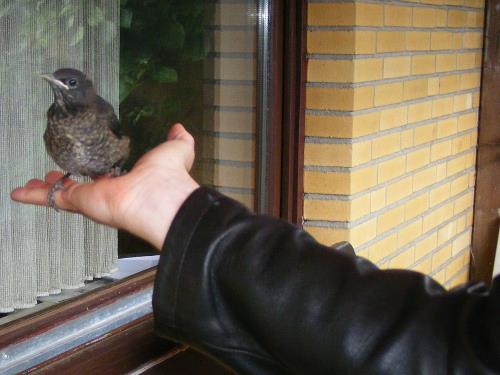 Nun spaziert das Drosseljunge auf der Terrasse herum und kann schon ein paar meter fliegen. Wir beobachten das Wachstum des kleinen Vogels und berichten Ihnen natürlich in Wort und Bild weiter darüber.