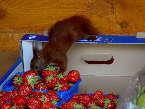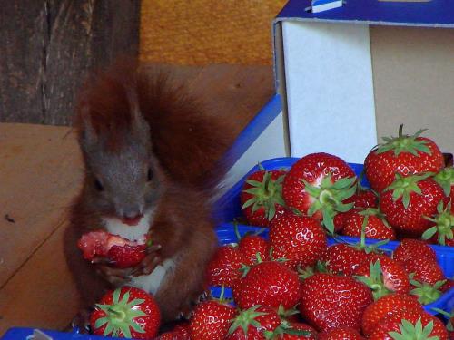 So entdeckte er an den Erdbeeren und auch an den Äpfeln seltsame Bissspuren. Der 70-Jährige legte sich auf die Lauer und entdeckte zwei Eichhörnchen auf Beutetour. Während eines der possierlichen Tiere Wache schob, setzte sich das andere in die Schale und verputzte genüsslich eine Erdbeere. Verscheuchen will Bönke die Eichhörnchen nicht, „sie fressen ja nicht viel“, sagt er.