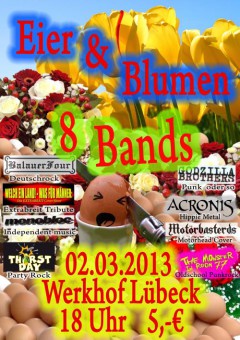 Wer ein Ei oder eine Blume mitbringt kann ein Ei oder eine Blume gewinnen (Bandmitglieder und Angehörige von der Teilnahme ausgeschlossen).