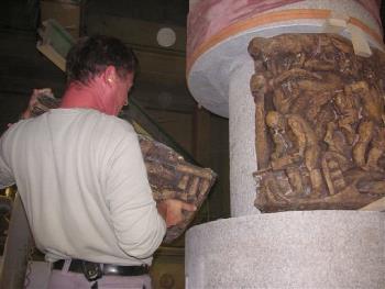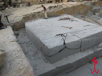 Der hellgraue Granit für das Projekt wurde in einem Steinbruch in China gebrochen. „Der Rohblock hatte ein Gewicht von über 100 Tonnen“, berichtet Projektleiter Thomas Purbs (41), der alle Abläufe koordiniert. „Der Rohblock wurde in China von unserer Partnerfirma weiterverarbeitet und die Rohformen hergestellt. Mit einem Gesamtgewicht von 37 Tonnen -30 Tonnen Brunnenschale und 7 Tonnen Brunnensäule – wurde der Brunnen als halbfertiger Rohling verschifft, was mehr auf Grund der Größe und weniger auf Grund des Gewichts nicht ohne Probleme war. Die Hafenanlagen für eine normale Containerabfertigung sind für solche Dimensionen in China nicht vorgesehen, also mussten wir auf einen speziellen Hafen ausweichen. Bei dieser ungewöhnlichen Abwicklung haben wir uns auf die Kontakte unseres Partners, der Lübecker „Spedition Bruhn“ verlassen“, so Purbs weiter.