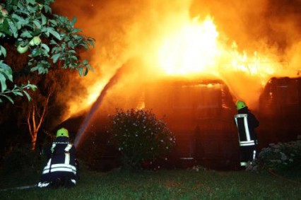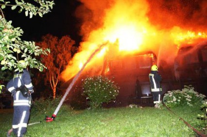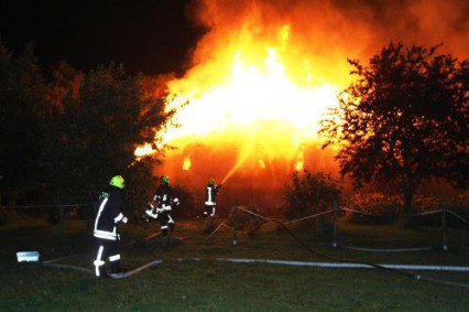 Gegen 1.44 Uhr wurde für die Feuerwehren Großalarm auf der Insel Fehmarn ausgelöst, der Leitstellendisponent Christian Schmidt in Eutin der Rettungsleitstelle alarmierte die Ortsfeuerwehren Puttgarden, Bannesdorf, Meeschendorf, Burg, Vadersdorf, Landkirchen, Bisdorf/Hinrichsdorf und Vadersdorf/Gammendorf. Die Technische Einsatzleitung von Fehmarn, Atemschutzgeräteträger sowie den Kreiswehrführer Ralf Thomson und den Rettungsdienst. Rund 120 Einsatzkräfte löschten bis in die Morgenstunden das Feuer, ein Bagger soll noch an die Schadenstelle zum Abnehmen des Daches angefordert werden. Der Sachschaden ist zurzeit noch nicht bekannt. Es wurde keiner verletzt.