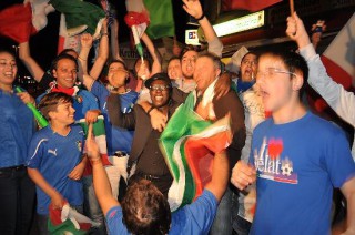 Lübeck Lupe Feierlaune nach Spiel Deutschland gegen Italien ungetrübt 29. Juni 2012 TBF “Zum Bilderbogen” Fotos: TBF/Holger Kröger – Trotz der Niederlage Deutschland gegen Italien (1:2) war die Freude ungetrübt und es wurde auf den Strassen Lübecks kräftig gefeiert.
