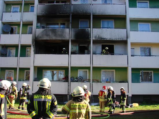 Wie die Feuerwehr mitteilte, stand der Balkon bei Eintreffen der Retter vollständig in Flammen. Die Scheiben waren mittlerweile geborsten und das Feuer griff heftig auf die Wohnung über“. Die Einsatzkräfte begannen von außen über eine Drehleiter zu löschen, ein zweiter Löschtrupp unter Atemschutz ging von innen gegen die Flammen vor.