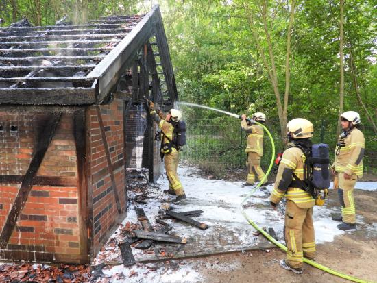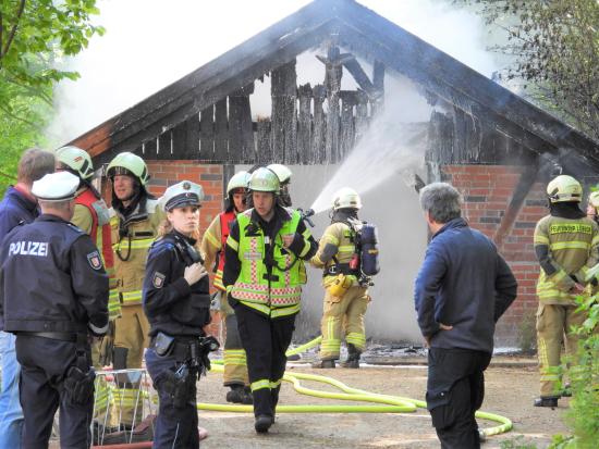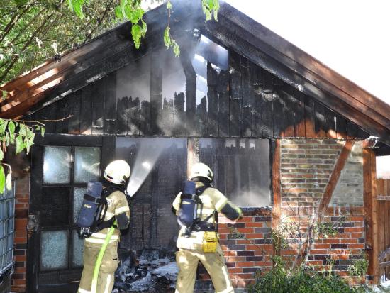 Text und Fotos: TBF/Holger Kröger · Lübeck. zu einem Feuer in der Waldorfschule in der Dieselstraße kam es heute gegen 17:00. Es brannten Müllcontainer in einem direkt neben der Schule gelegenen Schuppen. Die Feuerwehrleute konnte ein Übergreifen der Flammen in letzter Sekunde verhindern.Der Schuppen brannte beim beim Eintreffen der Feuerwehr lichterloh. Das Gebäude wurde mit Wasser geschützt und gleichzeitig der Schuppen gelöscht. Die Hitze war so groß, daß am Schulgebäude die große Hitze Schäden an der Fassade entstanden. Nach Kontrolle der Schulräume gab es Entwarnung, das Gebäude kann weiter genutzt werden. Der Einsatz war erfolgreich.