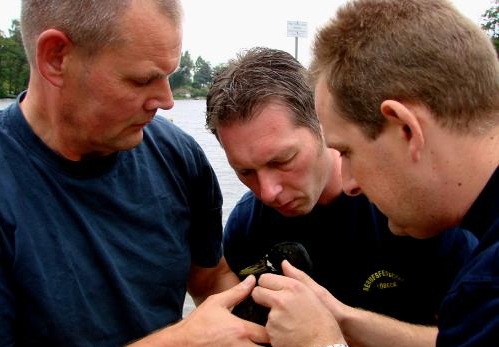 Fotos: TBF/ Holger Kröger –  Am Dienstagnachmittag wurde auf der Wakenitz, in Höhe der Moltkebrücke eine verletzte Ente gesichtet. In dem Hals der Ente steckte ein Angelhaken. Die Beine hatten sich in der Angelschnur verfangen. Taucher der herbeigerufenen Berufsfeuerwehr retteten das verletzte Tier. Anschließend wurde das Tier ins Tierheim gebracht um eine Wundversorgung zu garantieren.