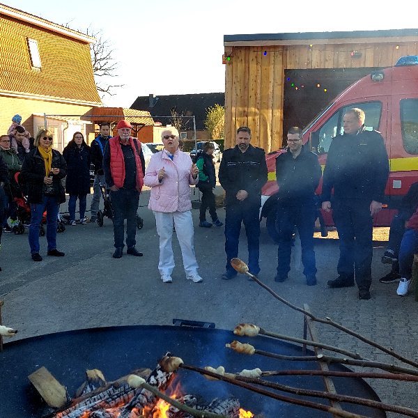 Und bei der Ansprache ließ die Bürgermeisterin es sich nicht nehmen, aus Anlaß der Feierstunde und des endlich wieder stattfindenden Osterfeuers, die Gäste zu Bratwurst und Pommes Frites einzuladen.