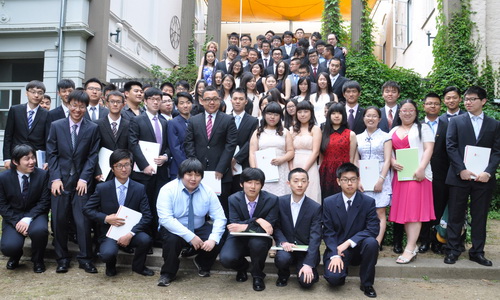„Zugegeben – einige Leute in China essen in der Tat äußerst fragwürdige Dinge wie Insekten oder Schlangen. Aber stellt euch nur mal vor – wären Adam und Eva Chinesen gewesen, würden wir immer noch im Garten Eden leben, weil sie anstatt des Apfels die Schlange gegessen hätten.“ Dieses sagte der chinesische Absolvent QUIAN Chengchen. Quian ist Sprecher des Studiengangs Environmental Engineering und bezog sich in seiner Abschlussrede auf die kulinarischen Unterschiede zwischen Deutschen und Chinesen. Über seine Erfahrungen aus der Zeit in Deutschland sagte er weiter: „Wir dachten, das Leben würde einfacher, wenn wir nach Deutschland kommen. Allerdings erteilte uns die Realität eine Lektion für das Leben, indem sie uns deutlich machte, dass wir immer noch sehr jung, noch einfach gestrickt und manchmal naiv sind. Allein deshalb hat es heute jeder verdient, sich und die anderen ausgiebig zu feiern.“