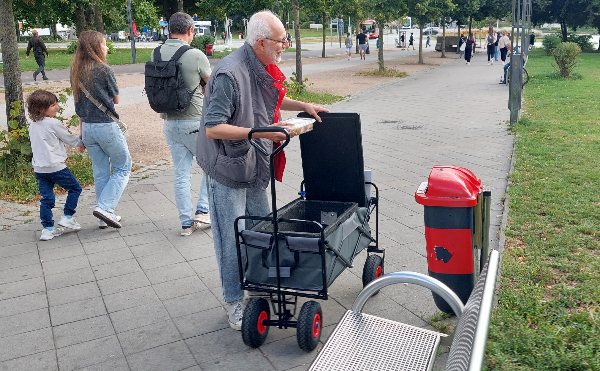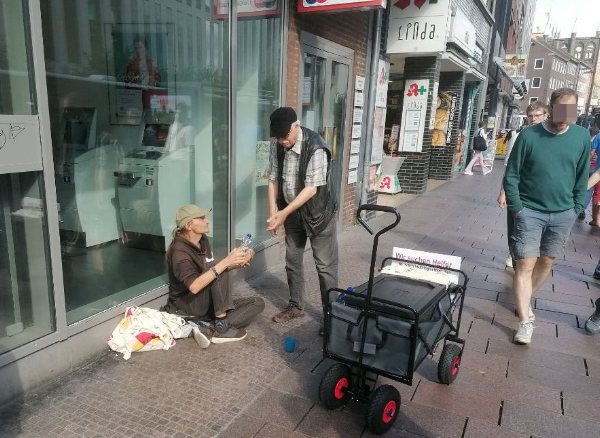 Also gingen der Koordinator Ronald Lechner und der Vorsitzende Wolfgang Freywald mit dem neuen, leichteren Bollerwagen die Citty Lübecks ab und fuhren dann mit dem Auto zum Bismarck Denkmal am Bahnhof und verteilten auch dort die Sandwiches, die dankbar angenommen wurden.