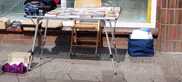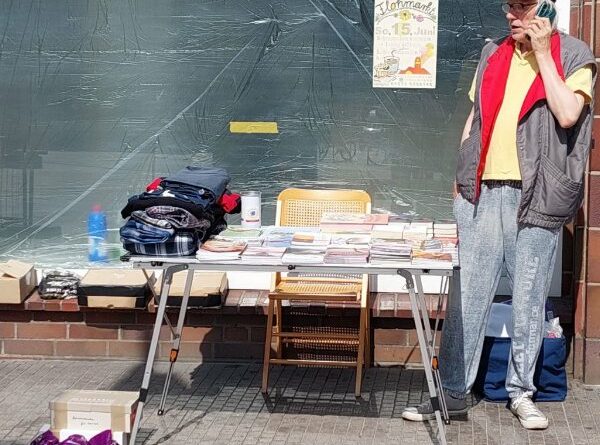 Text und Fotos (TBF) · Für die beiden Helfer der Stiftung, die auch diesmal „nur“ den kleinen Tisch mit Informationsmaterial und Kleidungsstücken, sowie wie Schuhen, war es bei so schönen Wetter ein Vergnügen, mit vorbei kommenden Menschen über viele Themen und auch über den Glauben zu sprechen. Und es nahmen sich etliche Lübecker und Touristen die Zeit, das Gespräch zu suchen. Daneben stöberten junge Leute in den biblischen Büchern, die auf dem Tisch lagen und nahmen freudich eine Menge mit nach Hause.