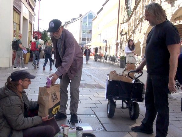 Nun zieht in der Hansestadt Lübeck langsam der Herbst ein und es wird bald wieder kälter. Ronald Lechner: „Doch egal, welches Wetter, ob kalt oder warm, der Hunger und Durst der Wohnungs- und Obdachlosen in Lübeck wird nicht kleiner, sondern größer!“ Oliver Siemsen: „Wir werden egal, ob es regnet, stürmt, oder schneit, unsere Caretüten bis zum Jahresende weiter verteilen. Wir als Helfer gehen nach der Verteilung wieder in unsere gewohnte Umgebung, doch die armen Menschen müssen auf der Straße bleiben!“
