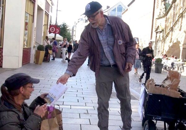 Ausgangpunkt war wie bisher, der Klingenberg um 11 Uhr in Lübeck. Dort sind ständig etliche Obdach- und Wohnungslose anzutreffen. Weiter ging es über die Breite Straße – hier war der glückliche Empfänger des 500. Pakets -, in die Beckergrube und dann zum Konrad-Adenauer-Platz.