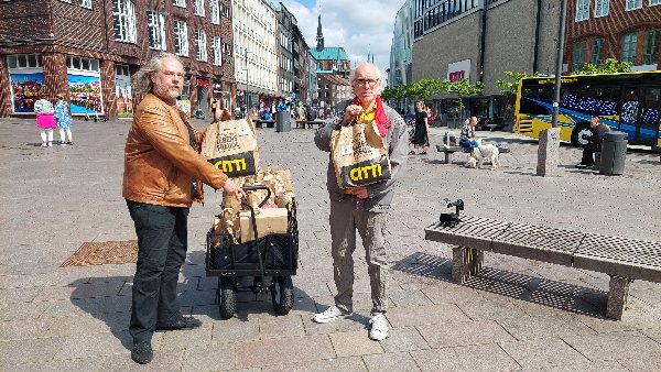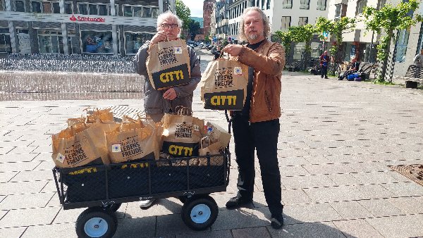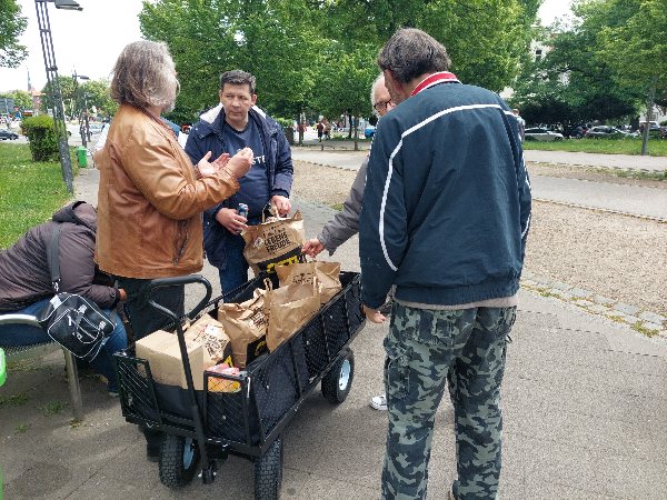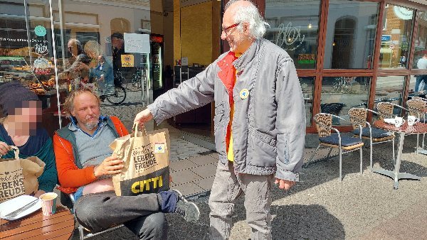 Text und Fotos: (TBF) Zum 2. Mal verteilten am 27. Mai 2023 die Helfer der Fides Humanitas Stiftung Carepakete an Wohnungs- und Obdachlose in Lübeck. Schon um 11 Uhr standen sie am Klingenberg und warteten auf die CITTI-Paktete. Alles wird immens teurer und ist für sie kaum noch erschwinglich, also benötigen sie dringend Hilfe und dafür sind wir da!