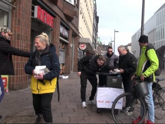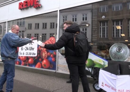 Nun verteilt die Fides Humanitas Stiftung aus Ellerau wieder mit dem Bollerwagen in Lübeck Sandwiches und Wasser an Wohnungs- und obachlose, sowie an andere arme Menschen.(Fotos: TBF) (22.02.25): Und es wird den Helfern immer wieder große Dankbarkeit gezeigt, was sie natürlich sehr erfreut. Am Holstentor kam Ihnen dann ein Demozug „Gegen rechts“ entgegen, was sie allerdings nicht groß interessierte, denn ihr Feierabend war schon sehr Nahe!