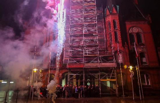 tbf010118_Grossfeuer-Beringstedt_Nyfeler_002aBilder-Impressionen zu Beginn des Jahres 2018 · Fotos: Thomas Nyfeler · Wunderkerzen Fotos – Mit Langzeitbelichtung, Übung und Schwung. Maria Nyfeler schrieb bei Regen die Jahreszahl „2018“ in die Luft.