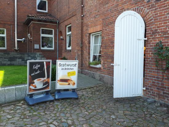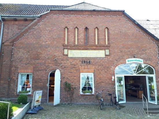 Ich rief vorher an und fragte, ob man auf der Terrasse sein Frühstück geniessen könne und bekam eine positive Antwort. Wer von Reinfeld aus in Richtung Zarpen fährt, kommt an den großen Hinweisschildern vorbei, die auf den Bauernladen und den gegenüberliegenden Golfplatz aufmerksam machen.
