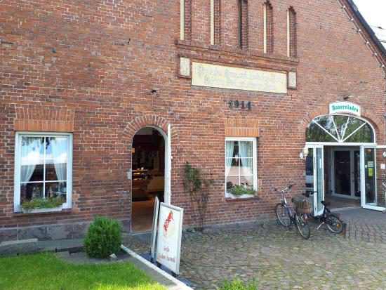 Holger und ich trafen uns um 10 Uhr vor dem Bauerladen und marschierten gemeinsam in den nicht gleich sichtbaren Laden, in einem sehr grossen Haus, gebaut 1914, das neben dem Laden ein angrenzenden Restaurant hat, das von einem Betreiber gepachtet ist, der seinen Kuchen und Torten von Dölger bezieht.