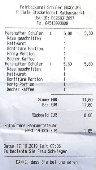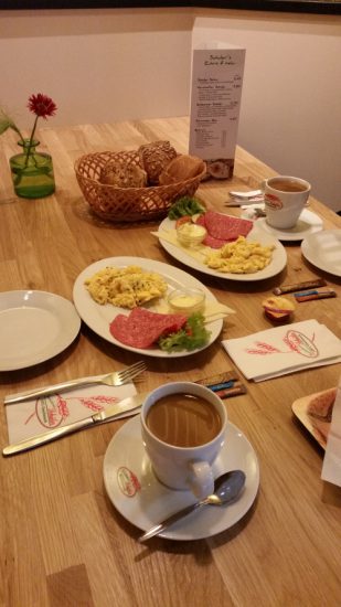Es ist ist lecker, die Ware ok, der Kaffee schmeckt. Traurig sind wir ein wenig, weil es früher bei einem Frühstück „Kaffee satt“ gab. ☹