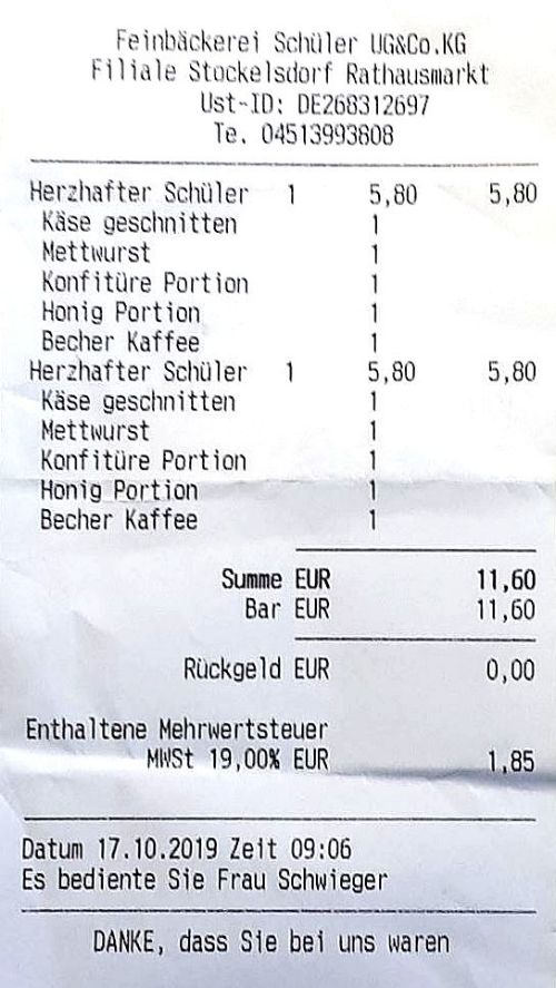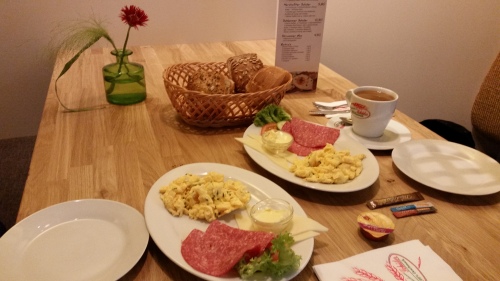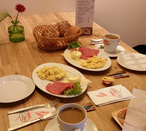 Es ist ist lecker, die Ware ok, der Kaffee schmeckt. Traurig sind wir ein wenig, weil es früher bei einem Frühstück „Kaffee satt“ gab. ☹