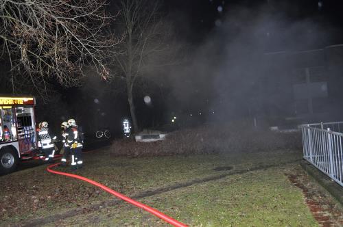 Mehrere Löschzüge, sowie Freiwillige Feuerwehren waren im Einsatz. Die Feuerwehrleute hatten den Brand im Keller lokalisiert und sofort unter schwerem Atemschutz mit Löschmaßnahmen begonnen. Die Räume und das Treppenhaus über dem Keller waren extrem verraucht und mussten an mehreren Stellen belüftet werden.