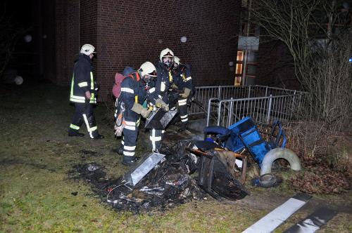 Text: Hanseatic News – Fotos: TBF/Holger Kröger – Lübeck- Montagnacht gegen 0:15 Uhr kam es im Keller des Zentralklinikums zu einem Feuer. Aus bislang unbekannter Ursache brannte Wäsche und Mobiliar. Da zunächst nicht klar war ob Menschen in Gefahr waren, löste die Leistelle der Feuerwehr Großalarm aus.. „Zum Bilderbogen“ Die ersten eintreffenden Kräfte konnten eine Verrauchung in einem Kellergeschoss bestätigen. Erkundungen mit einem C-Rohr unter Atemschutz ergaben, dass in einem Keller auf einer Fläche von etwa 4qm2 Wäsche brannte. Das Feuer konnte schnell unter Kontrolle gebracht werden und war um kurz vor ein Uhr gelöscht. Personen waren nicht in Gefahr. Von Evakuierungsmassnahmen konnte abgesehen werden, ebenso konnte die Klinikums-Einsatz-Leitung und der Leitende Notarzt untätig wieder einrücken. Die Feuerwehr Lübeck war mit 50 Einsatzkräften im Einsatz.