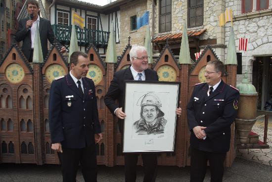 Kiel (ots) – Ministerpräsident Peter Harry Carstensen sollte am Samstag (28.4.) eigentlich „nur“ im feierlichen Rahmen den 5. Bauabschnitt der „Hanse-Themenwelt“ im „Hansa-Park in Sierksdorf eröffnen. Was ihn jedoch nach dem Durchschneiden eines roten Bandes erwartete, trieb dem Regierungschef die Rührung in die Augen: Mit einem lebensechten Portrait in Kohletechnik überraschte ihn die schleswig-holsteinische Jugendfeuerwehr im Landesfeuerwehrverband und bedankte sich auf diesem Wege für die stete tatkräftige Unterstützung des MP für die Feuerwehr-Jugendarbeit in dessen Amtszeit.
