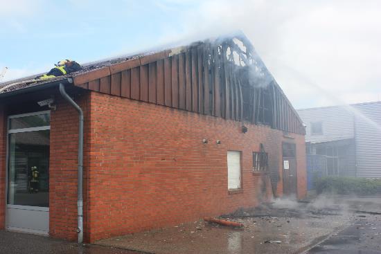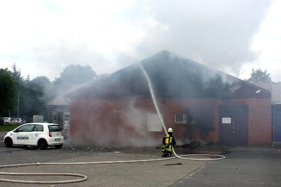 09.06.2013 – 15:43 Uhr, Kreisfeuerwehrverband Segeberg – Klein Rönnau (ots) – Am heutigen Sonntag wurde die Freiwillige Feuerwehr Klein Rönnau um 10:19 mit dem Einsatzstichwort „Feuer Klein“ in die Straße „Bollmoor“ gerufen. Laut Rettungsleitstelle sollte dort ein Container brennen. Schon auf der Anfahrt war eine schwarze Rauchwolke zu erkennen, so dass sich Einsatzleiter Volker Urbschat entschied, das Einsatzstichwort auf „Feuer Groß“ zu erhöhen.Am Einsatzort eingetroffenen stand die Giebelseite sowie Teile des Dachstuhles eines Gewerbeobjektes, in dem sich eine Spielhalle und ein Immobilienmakler befinden, bereits in Vollbrand.