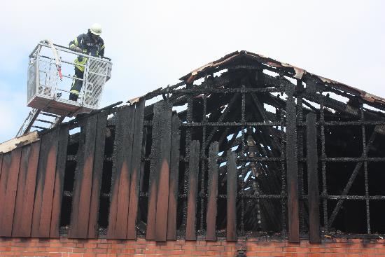 Nach rund 15 Minuten war der Brand unter Kontrolle. Das Feuer hatte sich auf einer Länge von knapp 15 Meter durch die Dachbalkenkonstruktion gefresse n, konnte sich aber aufgrund des schnellen Eingreifens der Feuerwehr nicht weiter ausbreiten.