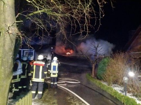 Fotos: Feuerwehr – Sievershütten (ots) – Ein Carportbrand in Sievershütten ist am frühen Morgen des 24.01.2013 auf ein angrenzendes Einfamilienhaus übergegriffen und hat hohen Sachschaden verursacht. Durch das schnelle Eingreifen der Feuerwehr konnte ein weiteres Einfamilienhaus vor den Flammen geschützt werden. Die Bewohner hatten bei Eintreffen der Feuerwehr das Gebäude bereits verlassen und wurden nicht verletzt. Die Brandursache sowie die Schadenhöhe sind unbekannt, die Kriminalpolizei war vor Ort.Gegen 2.30 Uhr meldete eine Nachbarin bei der Leitstelle Holstein einen brennenden Carport. Bei Eintreffen der ersten Kräfte der Wehren aus Stuvenborn und Sievershütten stand der Carport sowie ein darunter stehender PKW bereits in Vollbrand. „Auch ein angrenzender Anbau, der Giebel des direkt angrenzenden Einfamilienhauses sowie der Carport des Nachbarn hatten bereits Feuer gefangen, sagte Gemeindewehrführer und Einsatzleiter Gerhard Wrage.“ Umgehend wurde von Vor- und Rückseite die Brandbekämpfung eingeleitet. Zur Unterstützung wurden weitere Kräfte aus Oering, Kisdorf und Hüttblek alarmiert.