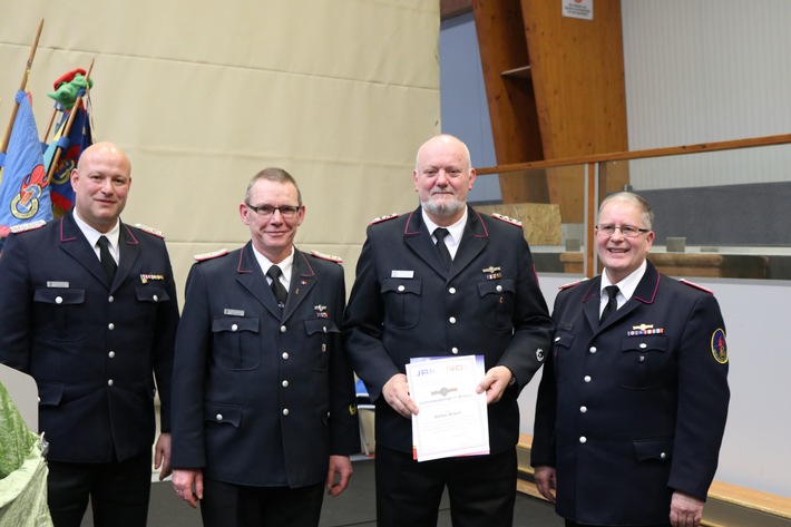Schleswig (ots) Zur Jahreshauptversammlung der Jugendfeuerwehren im Kreis Schleswig-Flensburg konnte Kreisjugendwart Ralf Hansen es fröhlich berichten, „wir haben die 1.000er Mitgliedermarke geknackt“. Mit 1.006 Mitgliedern in den 35 Jugendfeuerwehren und zwei Kinderfeuerwehren konnten wieder steigende Mitgliederzahlen vermeldet werden. Landrat Dr. Buschmann freut sich über die zahlreichen gut ausgebildeten Jugendliche, die in der Zukunft die Freiwilligen Feuerwehren unterstützen. Durch die große Vielfalt im Jugendfeuerwehrendienst bleibt die Jugendfeuerwehrarbeit die wichtigste Stütze die Einsatzfähigkeit der Feuerwehren aufrecht zu erhalten. Auch Bürgermeister Finn Petersen ist stolz die Jugendfeuerwehren aus dem gesamten Kreisgebiet in der Sporthalle in Sieverstedt begrüßen zu können. Die Feuerwehren sind ein hohes Gut in den Gemeinden und Ämtern. Zum Schluss wünschte Finn Petersen der Versammlung viel Erfolg und sagte „es ist eine geile Nummer was ihr hier leistet!“ Ralf Hansen ging in seinem Jahresbericht dann noch auf die hohe Zahl geleistete Stunden, in den 35 Jugendfeuerwehren und zwei Kinderfeuerwehren wurden 28.099 Stunden Jugendarbeit geleistet. Eine besondere Überraschung gab es für Stefan Alisch, Jugendwart der JF Mittelangeln. Für ihn hatten Ralf Hansen, Kreiswehrführer Mark Rücker und Landesjugendfeuerwehrwart Dirk Tschechne die Leistungsspange der schleswig-holsteinischen Jugendfeuerwehr in Bronze dabei. Für Michael Weber gab es für seine langjährige Tätigkeit als Jugendwart der JF Ostangeln die Leistungsspange in Silber. Bei den Wahlen gab es mehrere Posten im Jugendfeuerwehrausschuss neu zu besetzen. Lena Vanessa Hansen aus Kappeln wurde zur neuen Fachbereichsleiterin Presse- und Öffentlichkeitsarbeit gewählt. Thorsten Schmidt aus Oeversee wurde zum FBL Schriftführung gewählt. Die Jugendlichen werden im Kreisjugendfeuerwehrausschuss jetzt von Tabitha Zander aus Tetenhusen und Marten Schmidt aus Oeversee vertreten. Aus dem Ausschuss wurden Tim Oliver Böwes aus Kleinwiehe verabschiedet. Acht Jahre lang war er FBL Presse- und Öffentlichkeitsarbeit. Lina Heinecke aus Großenwiehe war drei Jahre lang Kreisjugendgruppenleiterin und Felix Hansen aus Jagel wurde nach einem Jahr als Kreisjugendgruppenleiter verabschiedet.
