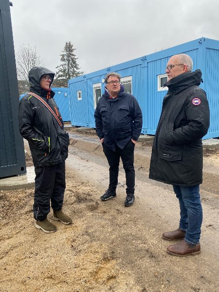 Die ersten Container wurden bereits aufgestellt. Ein Blick hinein zeigt, dass die Unterkünfte einfach und funktional ausgestattet sein werden. Toilette, Dusche Küchenzeile mit kleinem Aufenthaltsraum und zwei Schlafräume bieten voraussichtlich ab Ende April Platz für die ersten Familien. Insgesamt können hier maximal 328 Personen untergebracht werden.