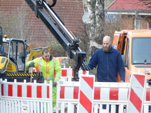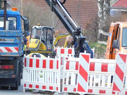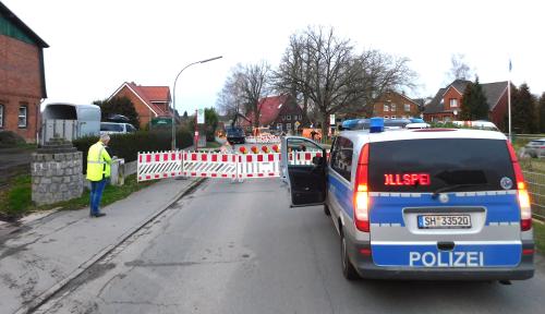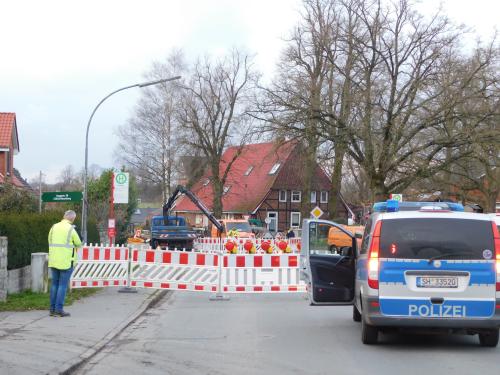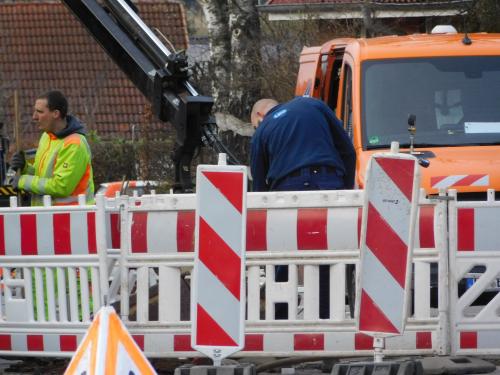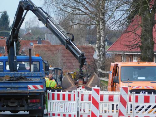 Feuerwehr, Polizei, Gas- und Bautrupps setzten sich eiligst in Marsch und rasten zur Gefahrenstelle. Das Gas mußte abgestellt, der Asphalt weiträumiger aufgerissen und Erdreich ausgehoben werden, um die Gasleitung reparieren zu können. Dafür wurde die Hauptstrasse beidseitig voll gesperrt, sodaß Autofahrer eine längere Umleitung in Kauf nehmen mussten.