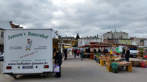 Und auch auf den Wochenmärkten (hier der Brolingmarkt), ging es sehr geordnet und gesittet zu. Die Ware war frisch und die Auswahl war wie immer reichlich, Abstände wurden eingehalten und die Gespräche auf das Nötigste beschränkt.