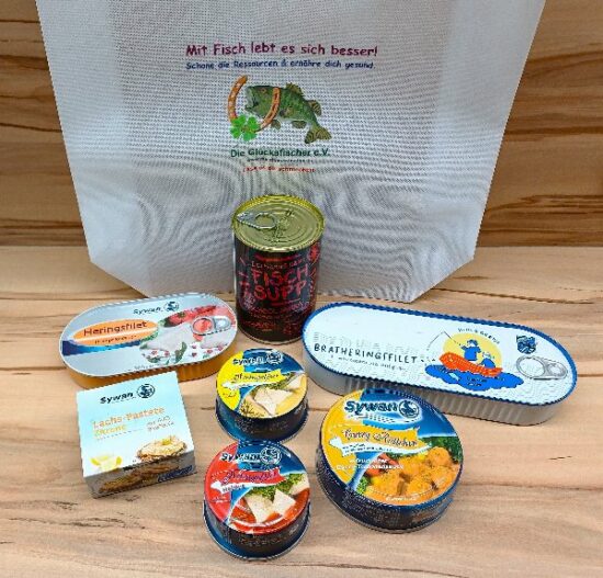 Die Fisch-Genusstüte der Aktion besteht aus fünf bis sieben Fischgerichten, wie z.B. Lachspastete, Fischsoljanka, Curry-Röllchen, Heringsfilets in Saucen, Brathering a la Hein & Grätje…
