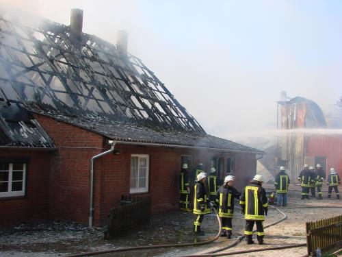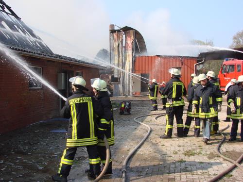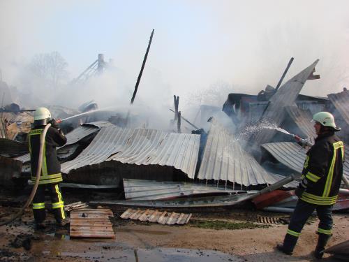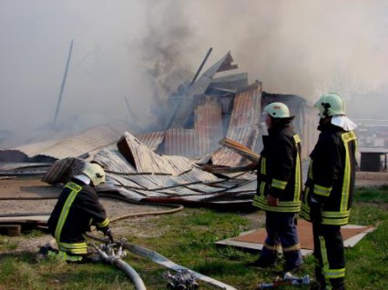 Gegen 15.30 Uhr wurde bei der Feuerwehr Alarm ausgelöst. Mehr als 100 Feuerwehrleute rückten aus und versuchten zu retten, was noch zu retten war. Personen und Tiere wurden bei dem Brand nicht verletzt, so die ersten Erkenntnisse der Feuerwehr.