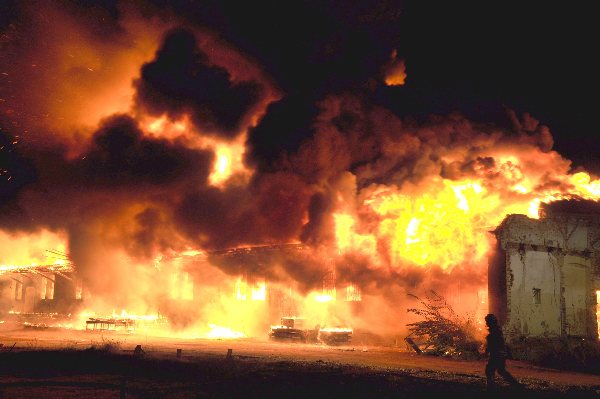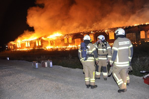 Fotos: TBF/Holger Kröger · Lübeck (ots) Am Sonntagmorgen gegen 3:50 Uhr wurde die Feuerwehr Lübeck durch eine Vielzahl von Notrufen zu einem Feuer an den Alten Güterbahnhof alarmiert. Beim Eintreffen der EInsatzkräfte an der Einsatzstelle stand eine ca. 70 m x 20 m große leerstehende Lagerhalle bereits im Vollbrand. Einsatzschwerpunkt war es, eine Brandausbreitung auf die unmittelbar angrenzende Lagerhalle zu verhindern. Hierfür wurde das Feuer durch die Löschzüge der Feuerwache 1 und 2 der Berufsfeuerwehr Lübeck und den Ergänzungseinheiten der Freiwilligen Feuerwehren Padelügge-Buntekuh, Schönböcken, Kronsforde, Niendorf und Moorgarten mit drei Einsatzabschnitten bekämpft.