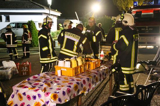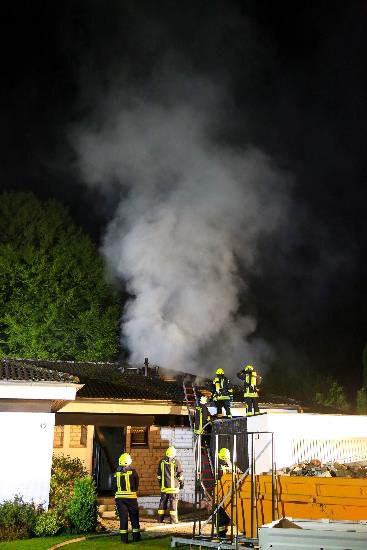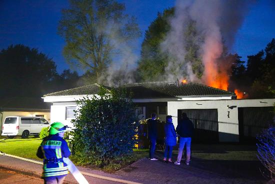Bei Eintreffen der ersten Freiwilligen Feuerwehren schlugen dort bereits die Flammen aus dem Dachstuhl, Feuerschein und Rauchsäule waren weit sichtbar. Das Haus wird zur Zeit renoviert und ist nicht bewohnt, daher kamen keine Menschen zu Schaden. Die Feuerwehrmänner und -frauen versuchten über den Garten und das Dach an die Brandstelle zu gelangen, da es sich jedoch um ein nachträglich erweitertes Dach handelte, war die Zwischendecke, in der sich der Brand befand, besonders ausgeprägt. Es wurden auch zahlreiche Dachpfannen und das Dämmmaterial entfernt, um an das Feuer zu gelangen. Außerdem wurde am Kamin, wo Einsatzleiter Thomas Storm, Gemeindewehrführer der Freiwilligen Feuerwehr Boostedt, den Ursprung des Brandes vermutete ein Durchbruch geschaffen, der ein Auffinden und Löschen der Flammen und Glutnester ermöglichte. Insgesamt waren über 100 Einsatzkräfte der Freiwilligen Feuerwehren Boostedt, Großenaspe, Braak, Latendorf, Klein Kummerfeld und Bimöhlen, sowie der Rettungsdienst, die Polizei und die Kriminalpolizei vor Ort. Anwohner und Eigentümer, der am Sonntag Geburtstag hatte, unterhielten sich geschockt auf der Straße, waren aber froh, dass durch das schnelle Eingreifen der Feuerwehren nicht mehr passiert ist. Für die Einsatzkräfte, die zwischenzeitlich mit 20 Trupps mit Atemschutzgeräteträgern vor Ort waren, wurden auf der Straße Gartenmöbel aufgestellt, sowie kalte und warme Getränke bereit gestellt. Das Löschen aller Glutnester und die Überprüfung mit der Wärmebildkamera wird noch bis nach Mitternacht andauern, sagte Thomas Storm. Über die Brandursache, sowie die Schadenshöhe können derzeit noch keine Angaben gemacht werden, dies ermittelt jetzt die Kriminalpolizei.