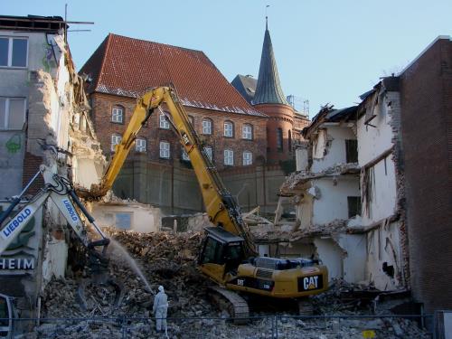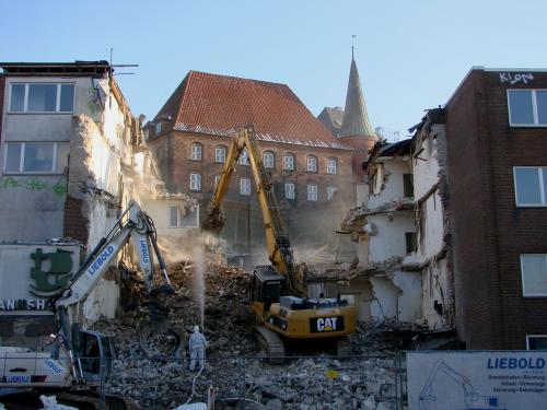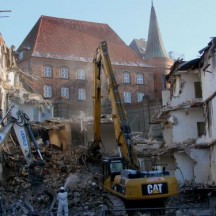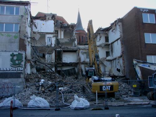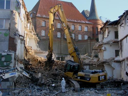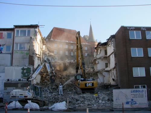 Fotos: TBF/Holger Kröger (1) Wikipedia (Seemannsheim vor dem Abriss) – Greifer sind seit kurzem im Gange und schaffen Platz fürs Hansemuseum / Teile des Seemannsheims werden abgerissen. „ … Ein Teil des Heimes muss stehen bleiben, um das Gelände abzustützen. In den kommenden Wochen rücken Bauarbeiter an, die eine Bohrpfahlwand setzen. Danach werden die Reste des Heimes sowie der Bunker bis auf die Sohle abgerissen. …“ „siehe weitere Fotos>>>!“