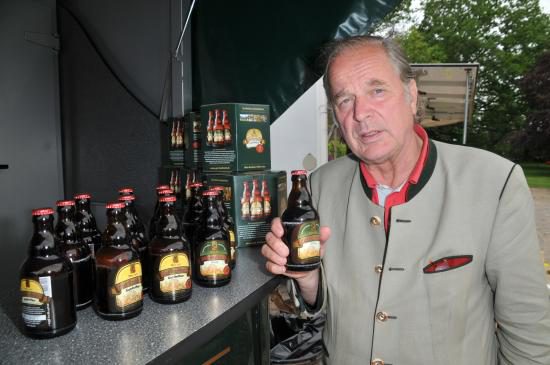 Der Baron präsentiert das Gut Basthorst Bier und Rapsblütenhonig.