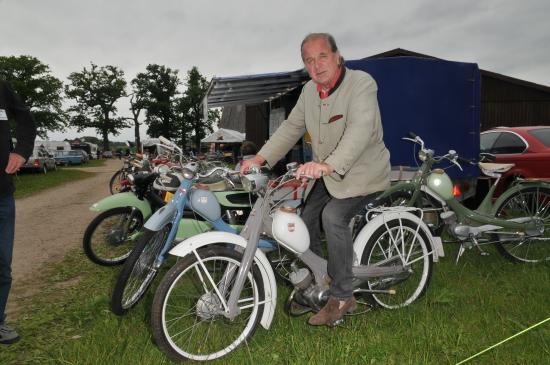 Text und Foto(s): TBF/Holger Kasnitz · Gut Basthorst – bei Enno Freiherr von Ruffin ist fix was los. Internationales-NSU-Oldtimer-Treffen vom 30. Mai – 02. Juni 2019 auf Gut Basthorst. Enno Freiherr von Ruffin machte am Himmelfahrtstag – Vatertag, zu Beginn der Open-Air-Ausstellung einen Rundgang auf Gut Basthorst und schaute sich die vielen Oldtimer-Modelle an.Oh, eine NSU Quickly, so eine Maschine hatte ich früher auch“, sagte der Baron und setzte sich gleich auf das Moped.