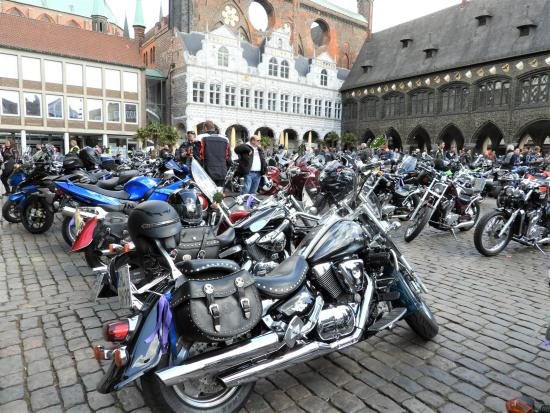 Symbolfoto Lübecker Markt: TBF/Holger Kröger · Der traditionelle Hamburger MOGO findet in diesem Jahr am 11. Juni zum 40. Mal statt. Mit Kollekte und Erlös des Countdown-Kalenders wird der im Vorjahr gegründete MOGO-Hilfsfonds unterstützt. Hamburg (dds) Gegründet vom damaligen Polizei-Pastor Reinhold Hintze, entwickelte sich der Hamburger Motorrad-Gottesdienst (MOGO) im Laufe der Jahre zum größten Motorrad-Gottesdienst in Europa und wahrscheinlich auch weltweit. In den Jahren vor Corona kamen bis zu 20.000 Bikerinnen und Biker mit ihren Maschinen zum MOGO. „Der Tank unserer Seele muss gefüllt werden, damit wir auf der Straße unseres Lebens nicht liegen bleiben“, sagte MOGO-Gründer Hintze 1984. Dabei stehen im Fokus des MOGO weniger das Motorradfahren, sondern die Gemeinschaft und der Gottesdienst, in dem Gott um Segen und Beistand gebeten wird für Menschen, die auf den Straßen in besonderer Weise gefährdet sind.
