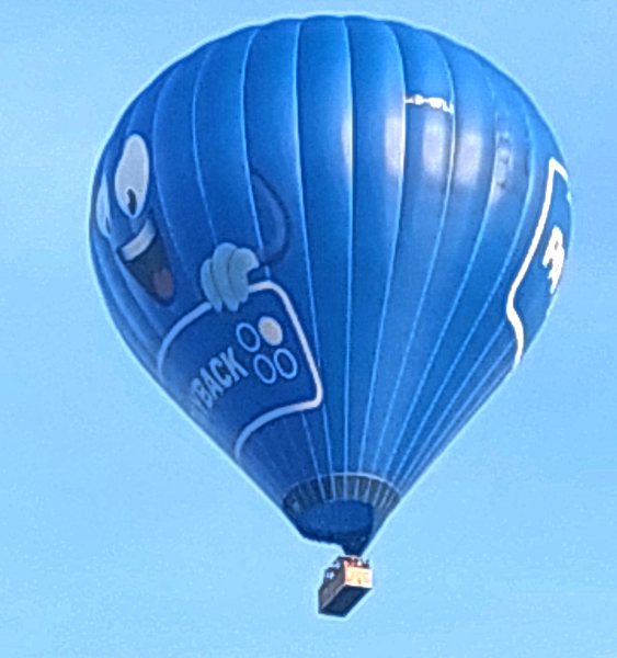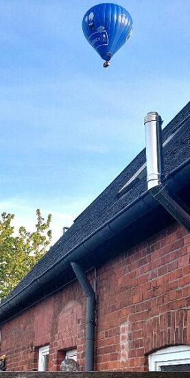 Fotos (TBF): Text Wolfgang Freywald · Ich saß gerade gemütlich auf der Couch und schaute mir die Tagesschau an, als ich wie elektiziert aufsprang, weil ich durch die Terrassentür einen Heißluft- bzw. Gasballon am Himmel vorüber ziehen sah. Ich holte schnell die Kamera raus und machte ein paar Bilder von dem Ereignis.
