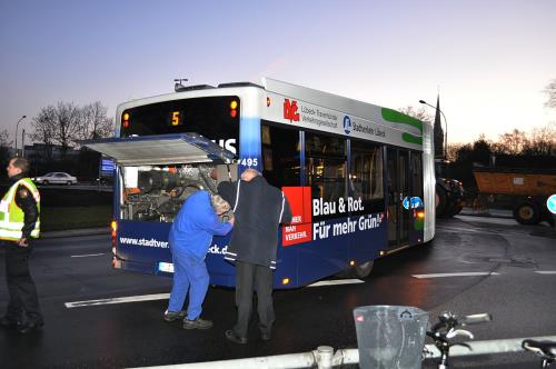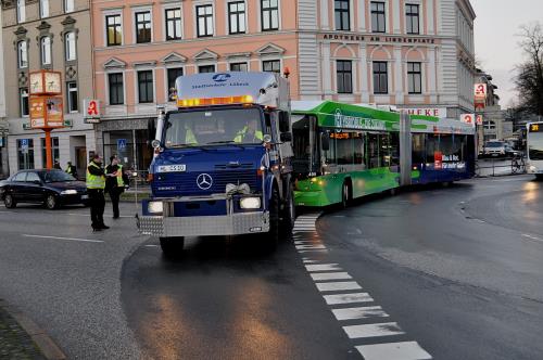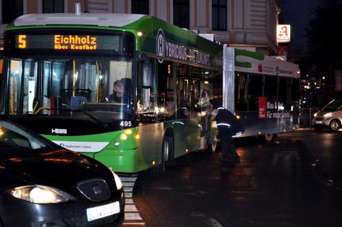 Während der Unfallaufnahme kam es noch zu einer weiteren Verkehrsbeeinträchtigung. Ein Hydridbus des Lübecker Stadtverkehrs hatte in Höhe des Verteilerkreises festsitzende Bremsen.