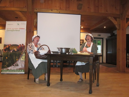 Zwei Küchenmädchen, die lieber singen als arbeiten, verstärken am Donnerstag, 5. September, ab 19 Uhr das Team des Landgasthofs Kasch in Ostholstein. Herz, Schmerz und düstere Balladen würzen deshalb in drei Zwischengängen das musikalische 4-Gang-Auftaktmenü. Und lecker wird es auch: Tellersülze, Zanderschnitte und Rückensteak stehen auf dem Speiseplan. Die Veranstaltung ist Teil des diesjährigen Programms des natur-genuss-festivals* „stiftungsland – genießerland“ der Stiftung Naturschutz Schleswig-Holstein und leitet die diesjährige Genießerland-Saison im Landgasthof Kasch ein.