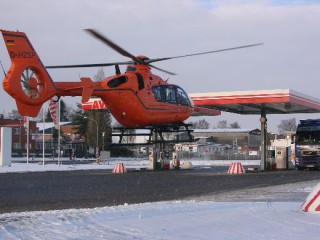 Fotos: TBF/Holger Kröger – Lübeck: Viele Passanten staunten gestern nicht schlecht als ein Hubschrauber auf der Tankstelle landete. Einige dachten schon da sei jemand wegen der hohen Benzinpreise in Ohnmacht gefallen, andere dachten der Hubschrauber wolle dort tanken.Alles nicht richtig. Der Pilot hatte keinen anderen Landeplatz entdeckt und landete deshalb kurzerhand auf der Tankstelle. Der Notarzt wurde zu einem Verkehrsunfall in der Nähe in die Posener Strasse gerufen.