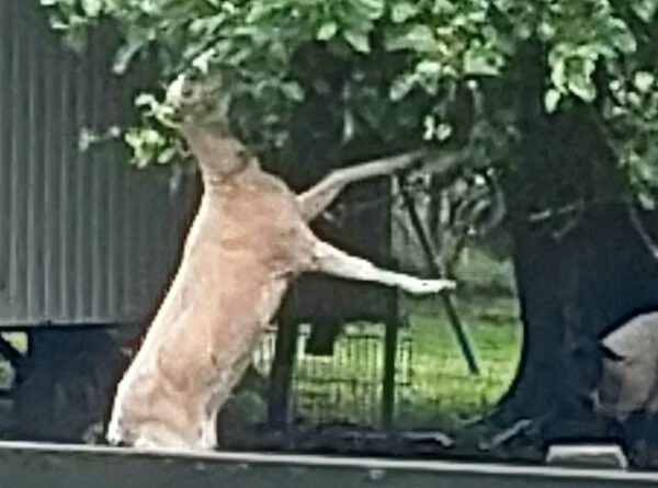 Das tat es solange, bis es nicht mehr an die leckeren Blätter ran kam. Aber es kommt sicherlich bald der Tag, nachdem es weiter gewachsen ist, daß das Schaf es bald wieder versucht und dann bestimmt Erfolg haben wird.