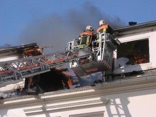 Fotos: TBF/Holger Kröger – Der starke Ostwind, der in Böen bis zu 7 Windstärken erreicht, lässt die vorhandenen Glutnester im Brandobjekt im Lübecker Stadtteil Schönböcken immer wieder aufflammen. Vermehrt rufen besorgte Bürgerrinnen bei der Feuerwehr an und melden Rauchentwicklungen aus dem Brandobjekt. Es besteht zwar keine akute Gefahr, die Einsatzkräfte müssen aber den Anrufen nachgehen und entdecken dann auch immer wieder schwelende Glutnester. Diese werden dann im Außenangriff über eine Drehleiter bzw. über noch einige intakte Treppenanlagen mit einem C- Rohr bekämpft.Am Montag wird in einer gemeinsamen Abstimmung mit der Polizei, Feuerwehr und dem Eigentümer das weitere Vorgehen festgelegt.