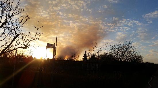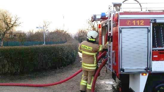Foto und Text: TBF/Holger Kasnitz · Mehrere Gartenlauben sind am Sonntag gegen 17.30 Uhr in Lübeck-Buntekuh abgebrannt. Es bildete sich über dem Gartengelände eine hohe Rauchsäule, die auch von Kücknitz und dem Hochschulstadtteil noch sichtbar war. Der Brand im Kleingartengelände breitete sich rasend schnell aus. Vier Lauben brannten vollständig ab. (siehe Bildergalerie Seite 2)>>>>Die Kleingärtner konnten sich alle in Sicherheit bringen. Verletzt wurde niemand. Den Feuerwehrleuten drohte bei den Löscharbeiten eine besondere Gefahr: Die gelagerten Gasflaschen in den Kleingärten wurden in einem Nahe gelegenen Gartenteich gekühlt.